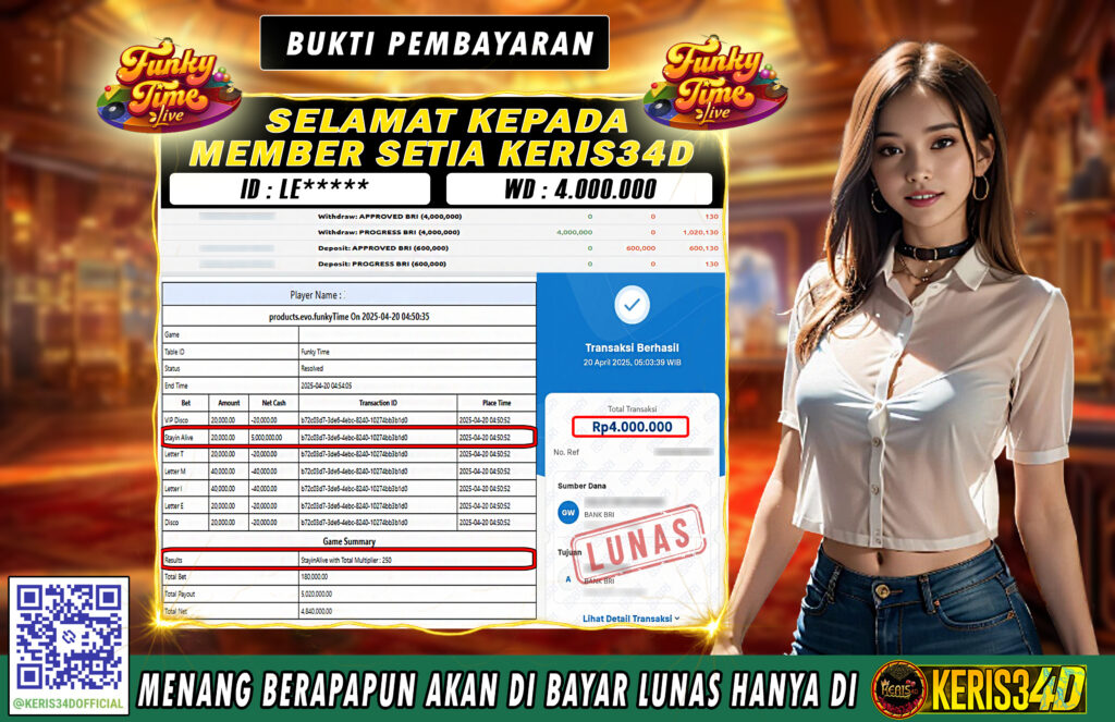 KERIS34D dikenal sebagai situs terpercaya yang selalu menghadirkan pengalaman bermain slot online yang aman, fair, dan berlisensi resmi. Di sini, kami tidak hanya sekadar memberikan janji, tapi bukti nyata berupa slip kemenangan yang dapat Anda lihat secara langsung.