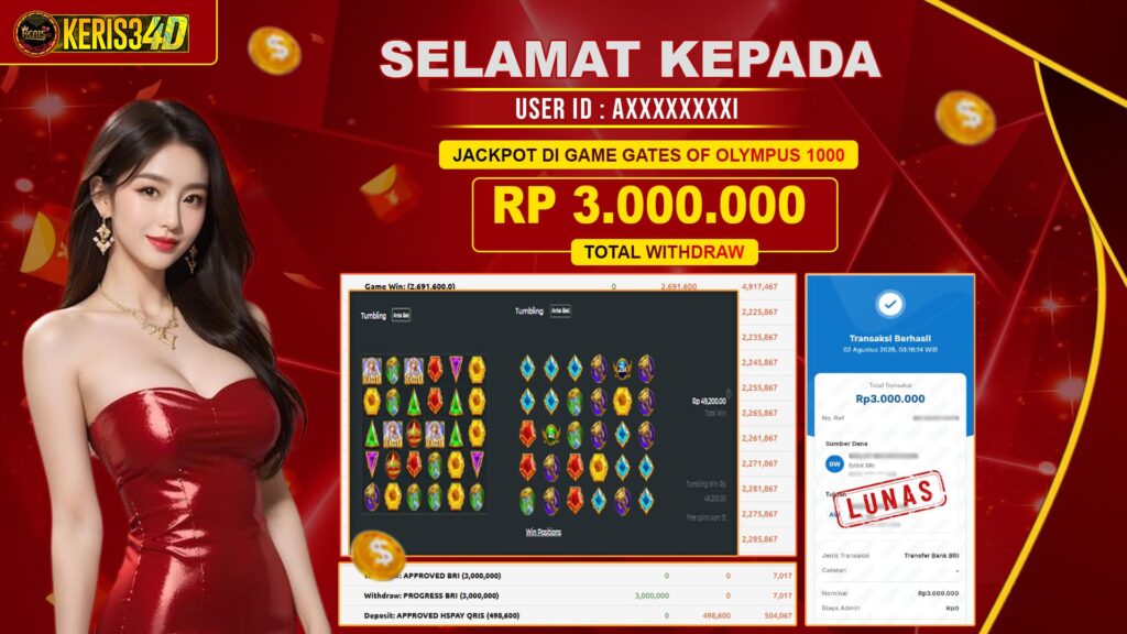 KERIS34D dikenal sebagai situs terpercaya yang selalu menghadirkan pengalaman bermain slot online yang aman, fair, dan berlisensi resmi. Di sini, kami tidak hanya sekadar memberikan janji, tapi bukti nyata berupa slip kemenangan yang dapat Anda lihat secara langsung.
