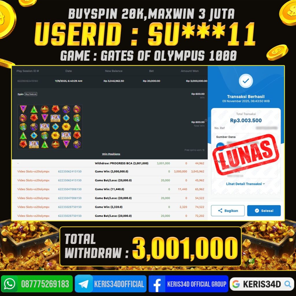 JACKPOT SLOT GACOR MAIN GATES OF OLYMPUS 1000 09 NOVEMBER 2025, Jackpot Slot Gacor, Kemenangan Slot, Bukti Kemenangan Slot, Kemenangan PRAGMATIC PLAY, Menang Slot online, Slot Gacor, Situs Aman Terpercaya, WD Berapapun Pasti DI Bayar Tuntas, Maxwin Slot Online.