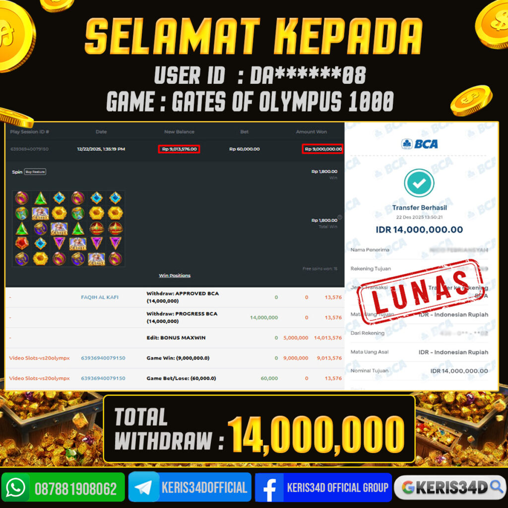 KERIS34D dikenal sebagai situs terpercaya yang selalu menghadirkan pengalaman bermain slot online yang aman, fair, dan berlisensi resmi. Di sini, kami tidak hanya sekadar memberikan janji, tapi bukti nyata berupa slip kemenangan yang dapat Anda lihat secara langsung.