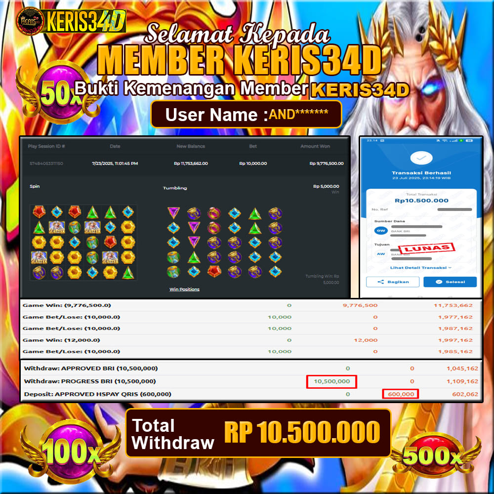 TOTAL KEMENANGAN : Rp. 10.500.000