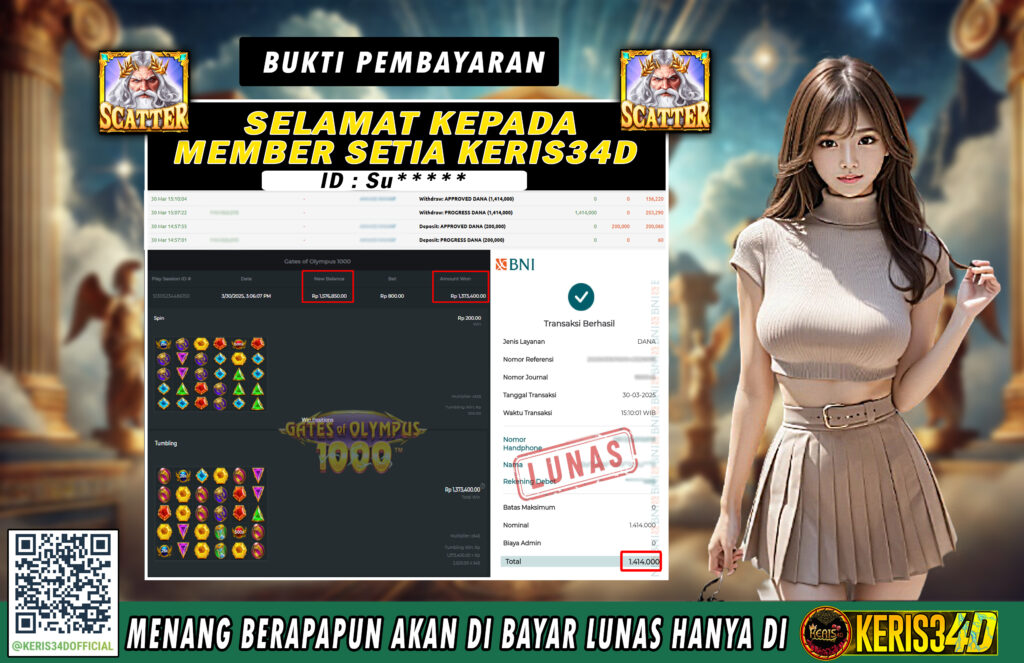 Setiap hari, member KERIS34D berhasil meraih jackpot besar dari berbagai provider slot ternama yang kami sediakan, seperti Pragmatic Play, Habanero, PG Soft, dan masih banyak lagi. Kami secara rutin menampilkan bukti screenshot atau rekapan kemenangan yang berhasil diraih, mulai dari kemenangan ratusan ribu hingga puluhan juta rupiah. Semua slip kemenangan ini kami hadirkan untuk membuktikan bahwa di KERIS34D, peluang menang itu nyata