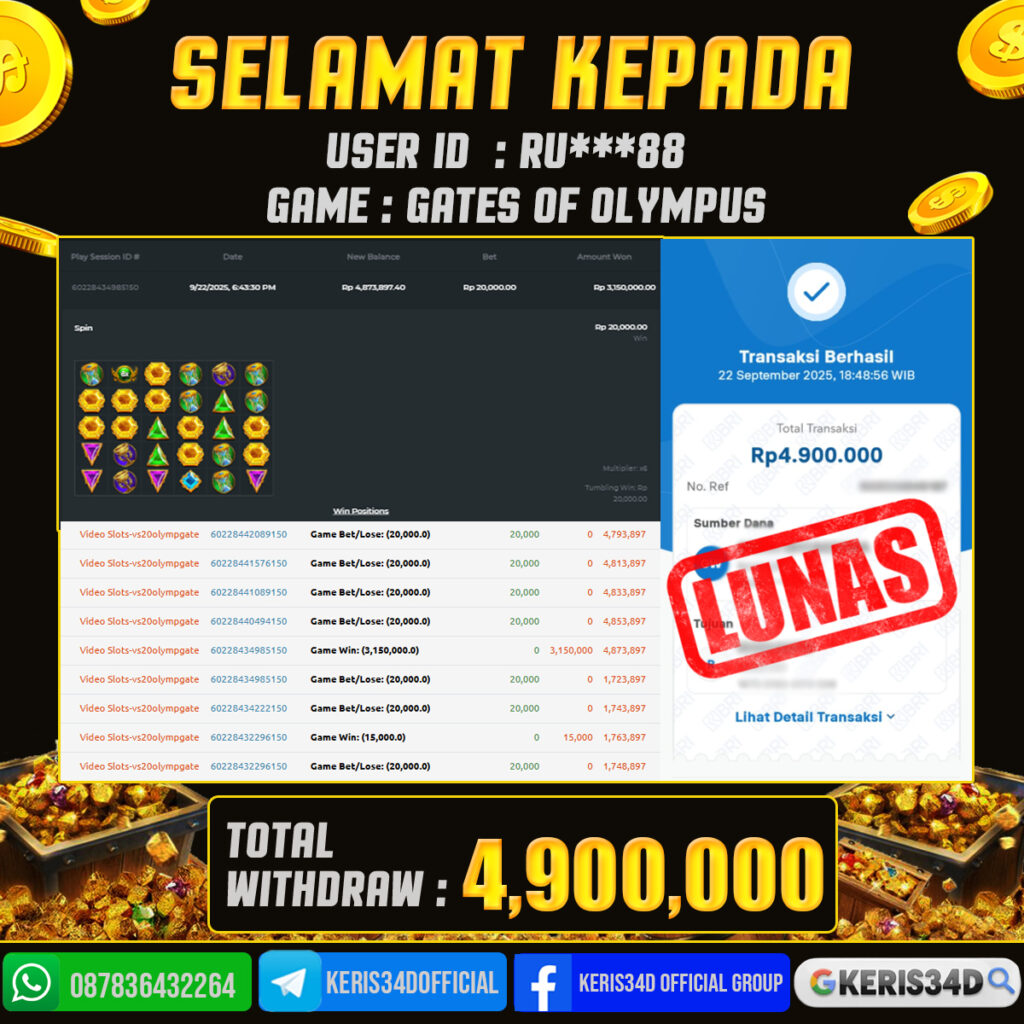 JACKPOT SLOT GACOR GATES OF OLYMPUS 22 SEPTEMBER 2025, Jackpot Slot Gacor, Kemenangan Slot, Bukti Kemenangan Slot, Kemenangan PRAGMATIC PLAY, Menang Slot online, Slot Gacor, Situs Aman Terpercaya, WD Berapapun Pasti DI Bayar Tuntas, Maxwin Slot Online.
