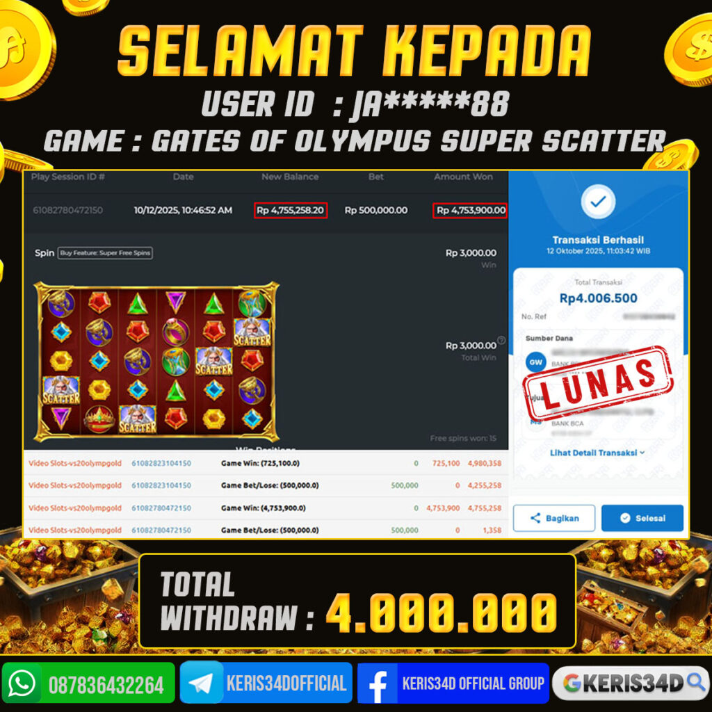 JACKPOT SLOT GACOR GATES OF OLYMPUS SUPER SCATTER 12 OKTOBER 2025, Jackpot Slot Gacor, Kemenangan Slot, Bukti Kemenangan Slot, Kemenangan PRAGMATIC PLAY, Menang Slot online, Slot Gacor, Situs Aman Terpercaya, WD Berapapun Pasti DI Bayar Tuntas, Maxwin Slot Online.