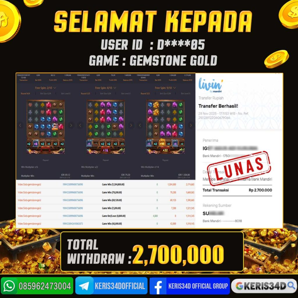 JACKPOT SLOT GACOR GEMSTONE GOLD WINS 28 NOVEMBER 2025