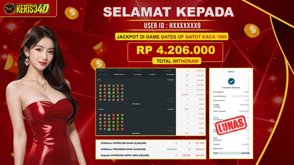 KERIS34D dikenal sebagai situs terpercaya yang selalu menghadirkan pengalaman bermain slot online yang aman, fair, dan berlisensi resmi. Di sini, kami tidak hanya sekadar memberikan janji, tapi bukti nyata berupa slip kemenangan yang dapat Anda lihat secara langsung.