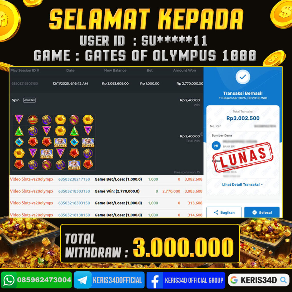 JACKPOT SLOT GACOR MAIN GATES OF OLYMPUS 1000 11 DESEMBER 2025, Jackpot Slot Gacor, Kemenangan Slot, Bukti Kemenangan Slot, Kemenangan PRAGMATIC PLAY, Menang Slot online, Slot Gacor, Situs Aman Terpercaya, WD Berapapun Pasti DI Bayar Tuntas, Maxwin Slot Online.
