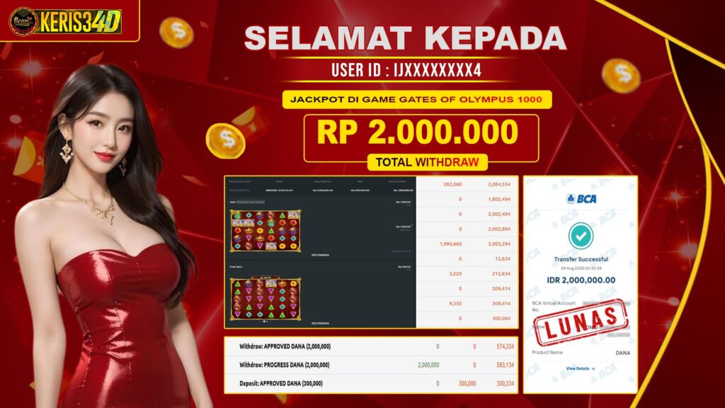 Setiap hari, member KERIS34D berhasil meraih jackpot besar dari berbagai provider slot ternama yang kami sediakan, seperti Pragmatic Play, Habanero, PG Soft, dan masih banyak lagi. Kami secara rutin menampilkan bukti screenshot atau rekapan kemenangan yang berhasil diraih, mulai dari kemenangan ratusan ribu hingga puluhan juta rupiah. Semua slip kemenangan ini kami hadirkan untuk membuktikan bahwa di KERIS34D, peluang menang itu nyata