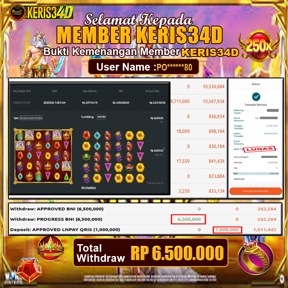 TOTAL KEMENANGAN : Rp. 6.500.000