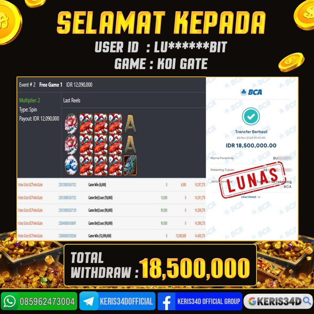 JACKPOT SLOT GACOR MAIN KOI GATE 26 NOVEMBER 2025, Jackpot Slot Gacor, Kemenangan Slot, Bukti Kemenangan Slot, Kemenangan HABANERO, Menang Slot online, Slot Gacor, Situs Aman Terpercaya, WD Berapapun Pasti DI Bayar Tuntas, Maxwin Slot Online.