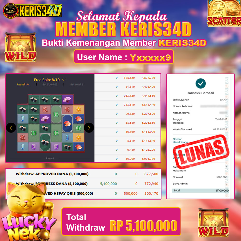 JACKPOT SLOT GACOR MAIN LUCKY NEKO 01 JULY 2025