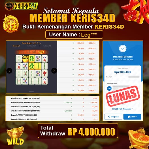 Setiap hari, member KERIS34D berhasil meraih jackpot besar dari berbagai provider slot ternama yang kami sediakan, seperti Pragmatic Play, Habanero, PG Soft, dan masih banyak lagi. Kami secara rutin menampilkan bukti screenshot atau rekapan kemenangan yang berhasil diraih, mulai dari kemenangan ratusan ribu hingga puluhan juta rupiah. Semua slip kemenangan ini kami hadirkan untuk membuktikan bahwa di KERIS34D, peluang menang itu nyata