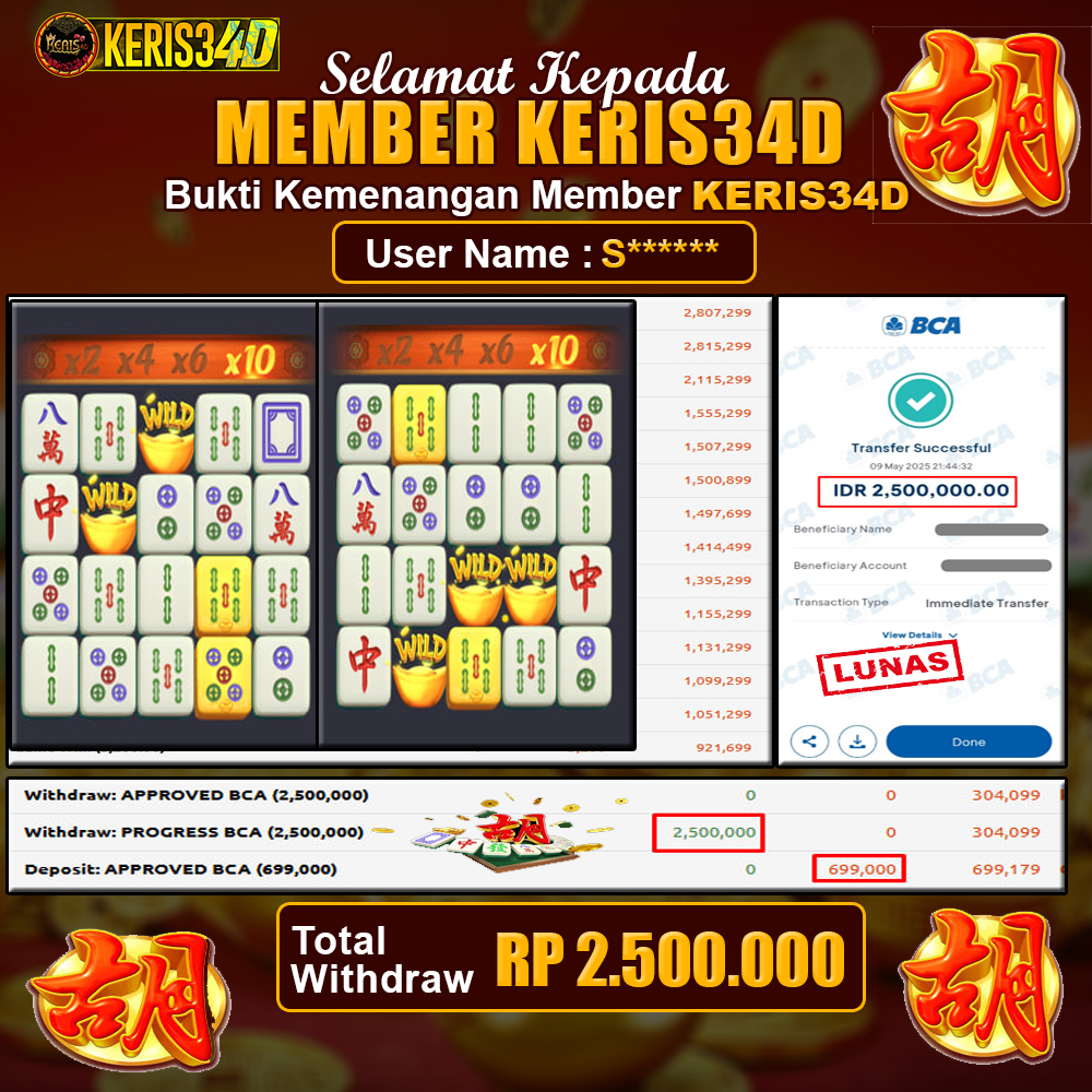 Setiap hari, member KERIS34D berhasil meraih jackpot besar dari berbagai provider slot ternama yang kami sediakan, seperti Pragmatic Play, Habanero, PG Soft, dan masih banyak lagi. Kami secara rutin menampilkan bukti screenshot atau rekapan kemenangan yang berhasil diraih, mulai dari kemenangan ratusan ribu hingga puluhan juta rupiah. Semua slip kemenangan ini kami hadirkan untuk membuktikan bahwa di KERIS34D, peluang menang itu nyata
