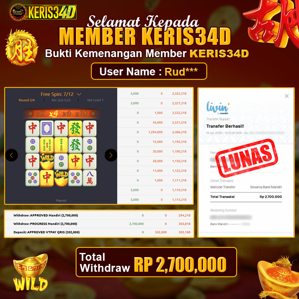 Setiap hari, member KERIS34D berhasil meraih jackpot besar dari berbagai provider slot ternama yang kami sediakan, seperti Pragmatic Play, Habanero, PG Soft, dan masih banyak lagi. Kami secara rutin menampilkan bukti screenshot atau rekapan kemenangan yang berhasil diraih, mulai dari kemenangan ratusan ribu hingga puluhan juta rupiah. Semua slip kemenangan ini kami hadirkan untuk membuktikan bahwa di KERIS34D, peluang menang itu nyata