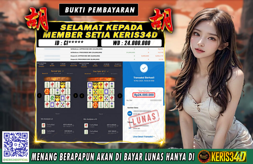 Setiap hari, member KERIS34D berhasil meraih jackpot besar dari berbagai provider slot ternama yang kami sediakan, seperti Pragmatic Play, Habanero, PG Soft, dan masih banyak lagi. Kami secara rutin menampilkan bukti screenshot atau rekapan kemenangan yang berhasil diraih, mulai dari kemenangan ratusan ribu hingga puluhan juta rupiah. Semua slip kemenangan ini kami hadirkan untuk membuktikan bahwa di KERIS34D, peluang menang itu nyata