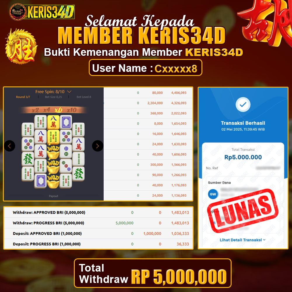 Setiap hari, member KERIS34D berhasil meraih jackpot besar dari berbagai provider slot ternama yang kami sediakan, seperti Pragmatic Play, Habanero, PG Soft, dan masih banyak lagi. Kami secara rutin menampilkan bukti screenshot atau rekapan kemenangan yang berhasil diraih, mulai dari kemenangan ratusan ribu hingga puluhan juta rupiah. Semua slip kemenangan ini kami hadirkan untuk membuktikan bahwa di KERIS34D, peluang menang itu nyata