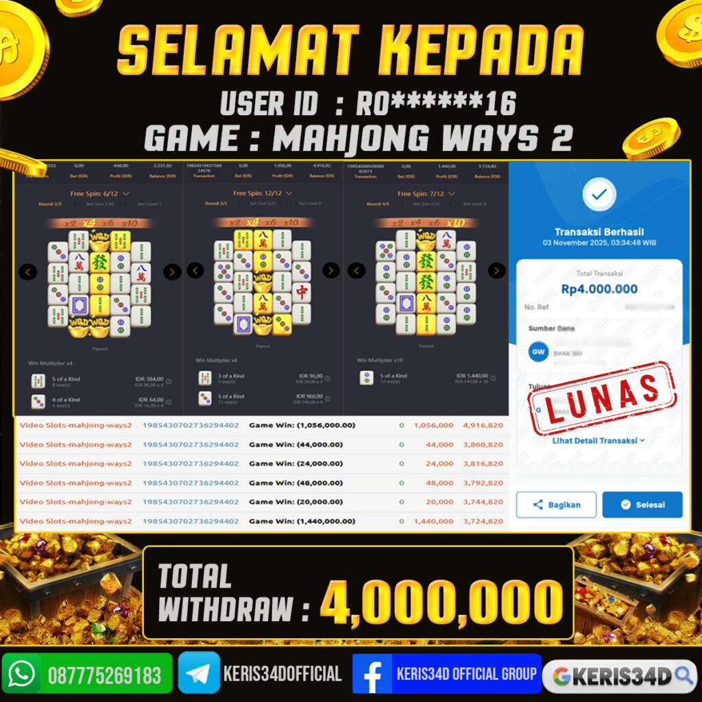 JACKPOT SLOT GACOR MAHJONG WAYS 2 04 NOVEMBER 2025, Jackpot Slot Gacor, Kemenangan Slot, Bukti Kemenangan Slot, Kemenangan PGSOFT, Menang Slot online, Slot Gacor, Situs Aman Terpercaya, WD Berapapun Pasti DI Bayar Tuntas, Maxwin Slot Online.