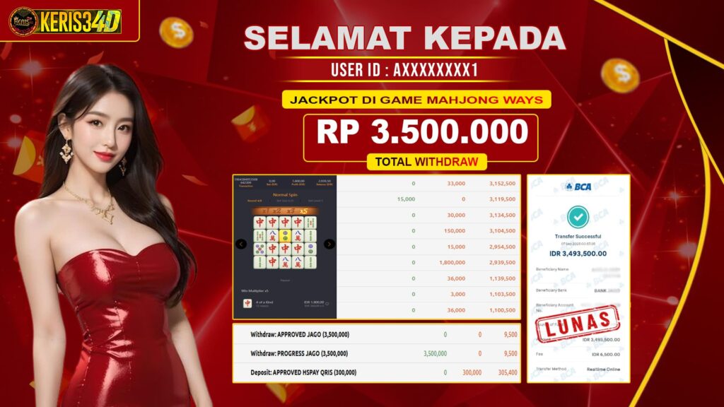 Setiap hari, member KERIS34D berhasil meraih jackpot besar dari berbagai provider slot ternama yang kami sediakan, seperti Pragmatic Play, Habanero, PG Soft, dan masih banyak lagi. Kami secara rutin menampilkan bukti screenshot atau rekapan kemenangan yang berhasil diraih, mulai dari kemenangan ratusan ribu hingga puluhan juta rupiah. Semua slip kemenangan ini kami hadirkan untuk membuktikan bahwa di KERIS34D, peluang menang itu nyata