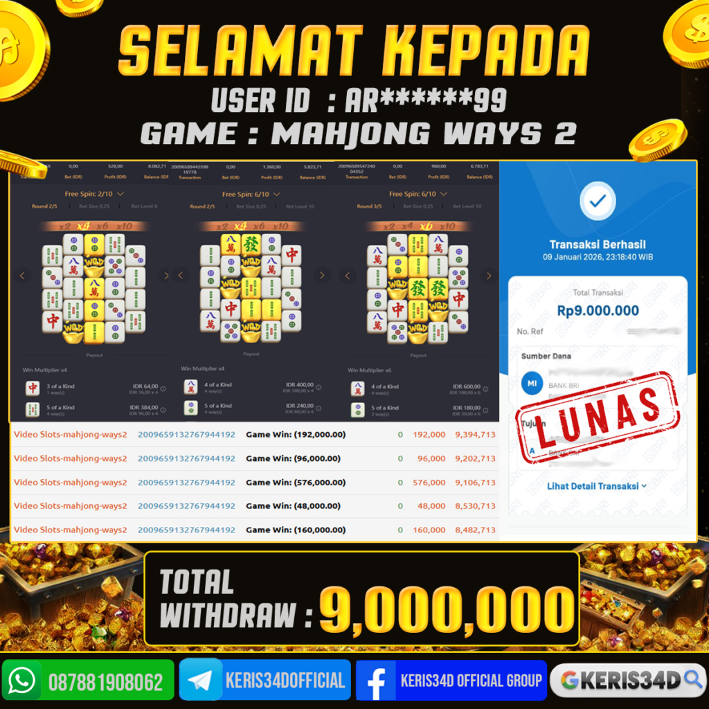 TOTAL KEMENANGAN : Rp. 9.000.000