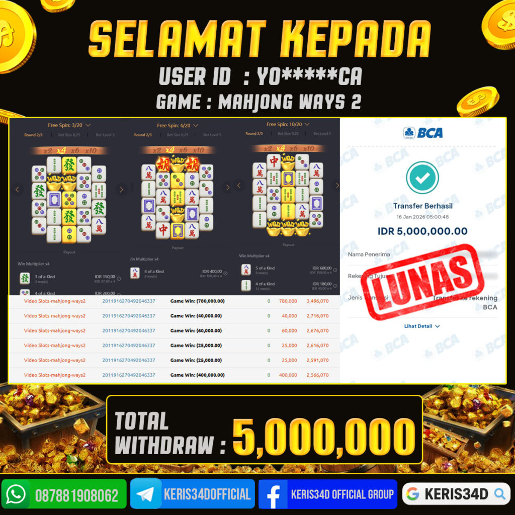JACKPOT SLOT GACOR MAIN MAHJONG WAYS 2 16 JANUARI 2026