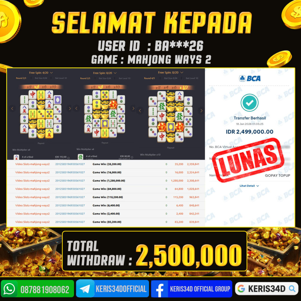 JACKPOT SLOT GACOR MAIN MAHJONG WAYS 2 18 JANUARI 2026