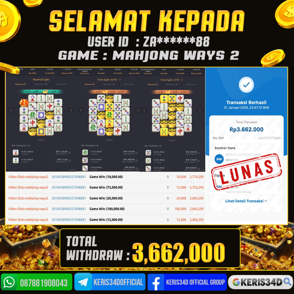 TOTAL KEMENANGAN : Rp. 3.663.000