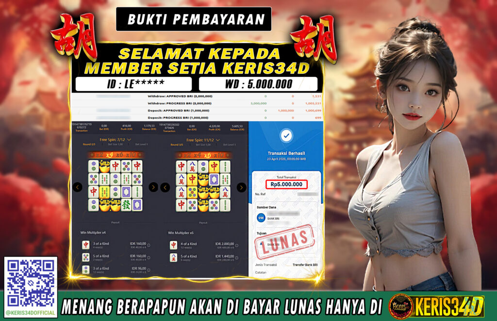Setiap hari, member KERIS34D berhasil meraih jackpot besar dari berbagai provider slot ternama yang kami sediakan, seperti Pragmatic Play, Habanero, PG Soft, dan masih banyak lagi. Kami secara rutin menampilkan bukti screenshot atau rekapan kemenangan yang berhasil diraih, mulai dari kemenangan ratusan ribu hingga puluhan juta rupiah. Semua slip kemenangan ini kami hadirkan untuk membuktikan bahwa di KERIS34D, peluang menang itu nyata