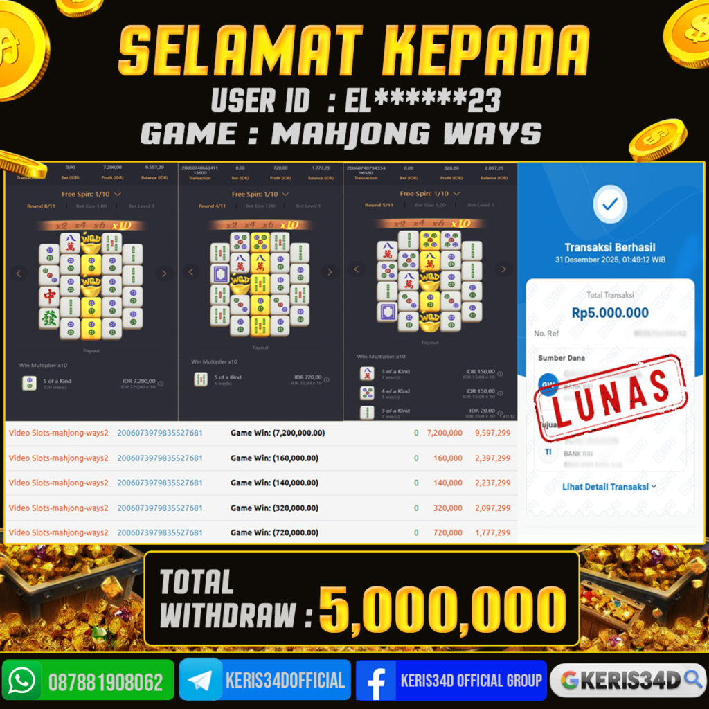 JACKPOT SLOT GACOR MAIN MAHJONG WAYS 31 DESEMBER 2025, Jackpot Slot Gacor, Kemenangan Slot, Bukti Kemenangan Slot, Kemenangan PGSOFT, Menang Slot online, Slot Gacor, Situs Aman Terpercaya, WD Berapapun Pasti DI Bayar Tuntas, Maxwin Slot Online.