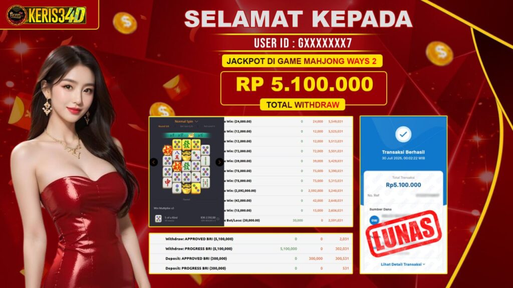 KERIS34D dikenal sebagai situs terpercaya yang selalu menghadirkan pengalaman bermain slot online yang aman, fair, dan berlisensi resmi. Di sini, kami tidak hanya sekadar memberikan janji, tapi bukti nyata berupa slip kemenangan yang dapat Anda lihat secara langsung.