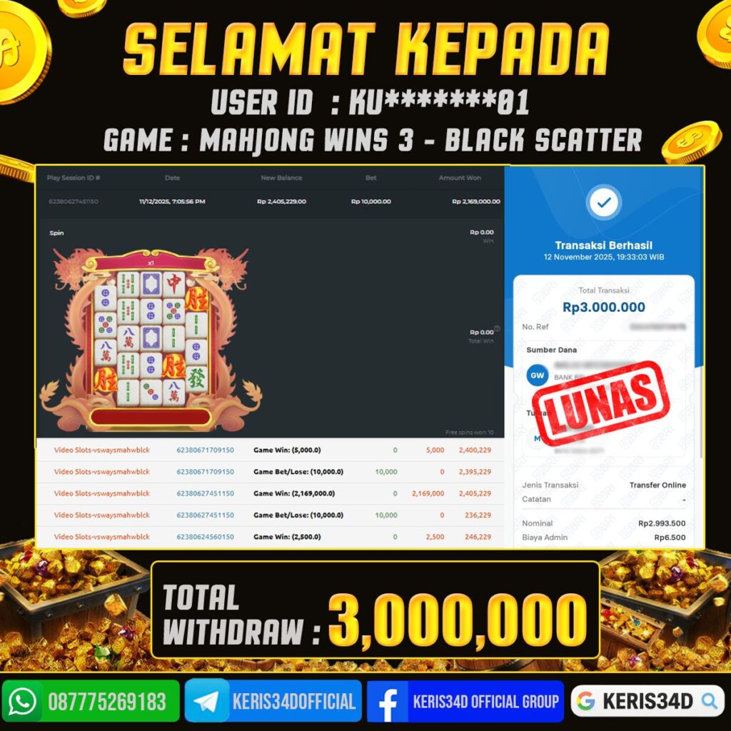 JACKPOT SLOT GACOR MAIN MAHJONG WINS 3 – BLACK 12 NOVEMBER 2025, Jackpot Slot Gacor, Kemenangan Slot, Bukti Kemenangan Slot, Kemenangan PRAGMATIC, Menang Slot online, Slot Gacor, Situs Aman Terpercaya, WD Berapapun Pasti DI Bayar Tuntas, Maxwin Slot Online.
