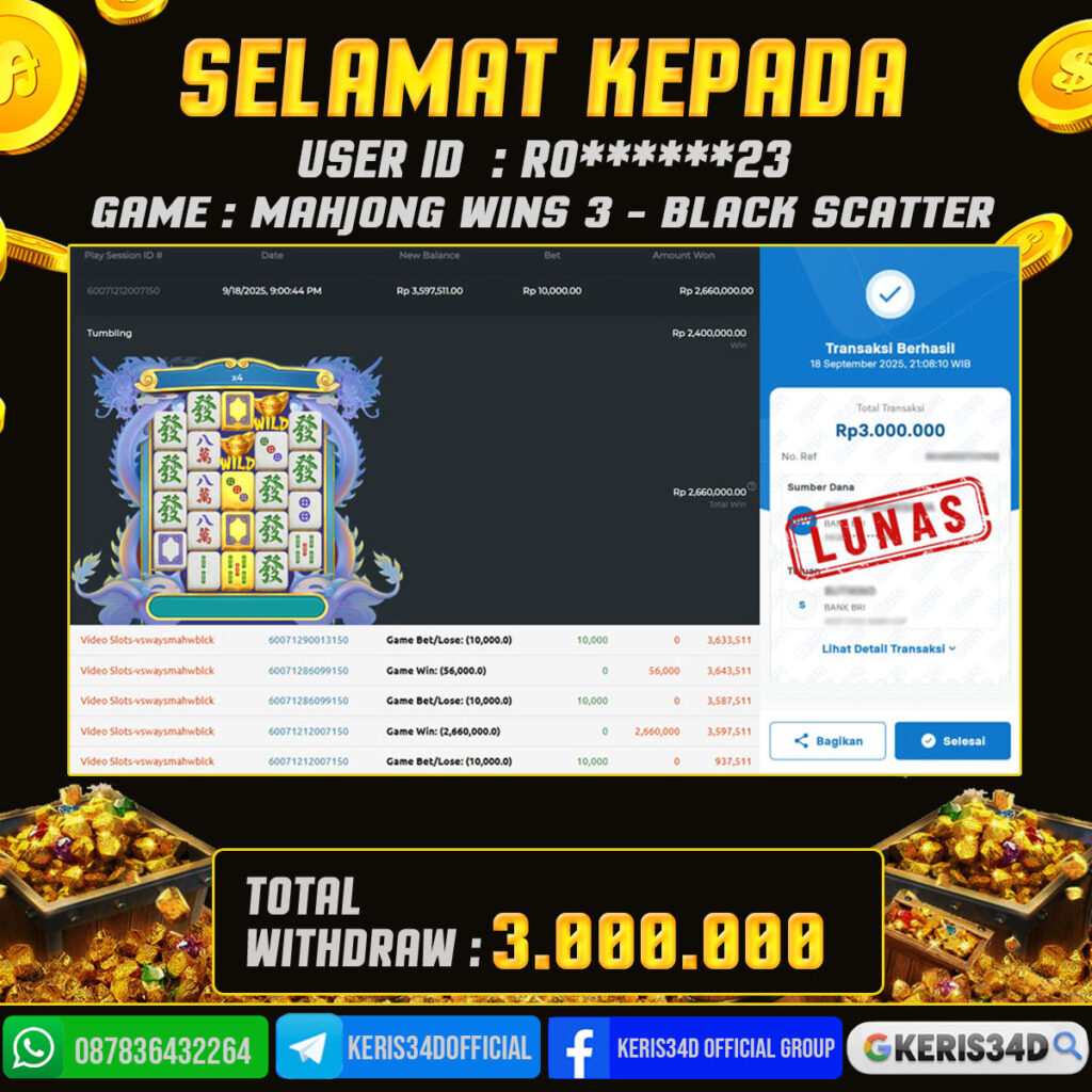 JACKPOT SLOT GACOR MAIN MAHJONG WINS 3 – BLACK SCATTER 18 SEPTEMBER 2025