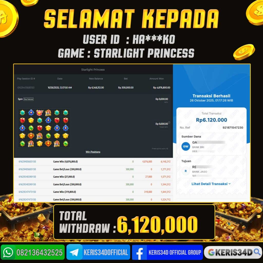 JACKPOT SLOT GACOR MAIN STARLIGHT PRINCESS 26 OKTOBER 2025, Jackpot Slot Gacor, Kemenangan Slot, Bukti Kemenangan Slot, Kemenangan PRAGMATIC PLAY, Menang Slot online, Slot Gacor, Situs Aman Terpercaya, WD Berapapun Pasti DI Bayar Tuntas, Maxwin Slot Online.