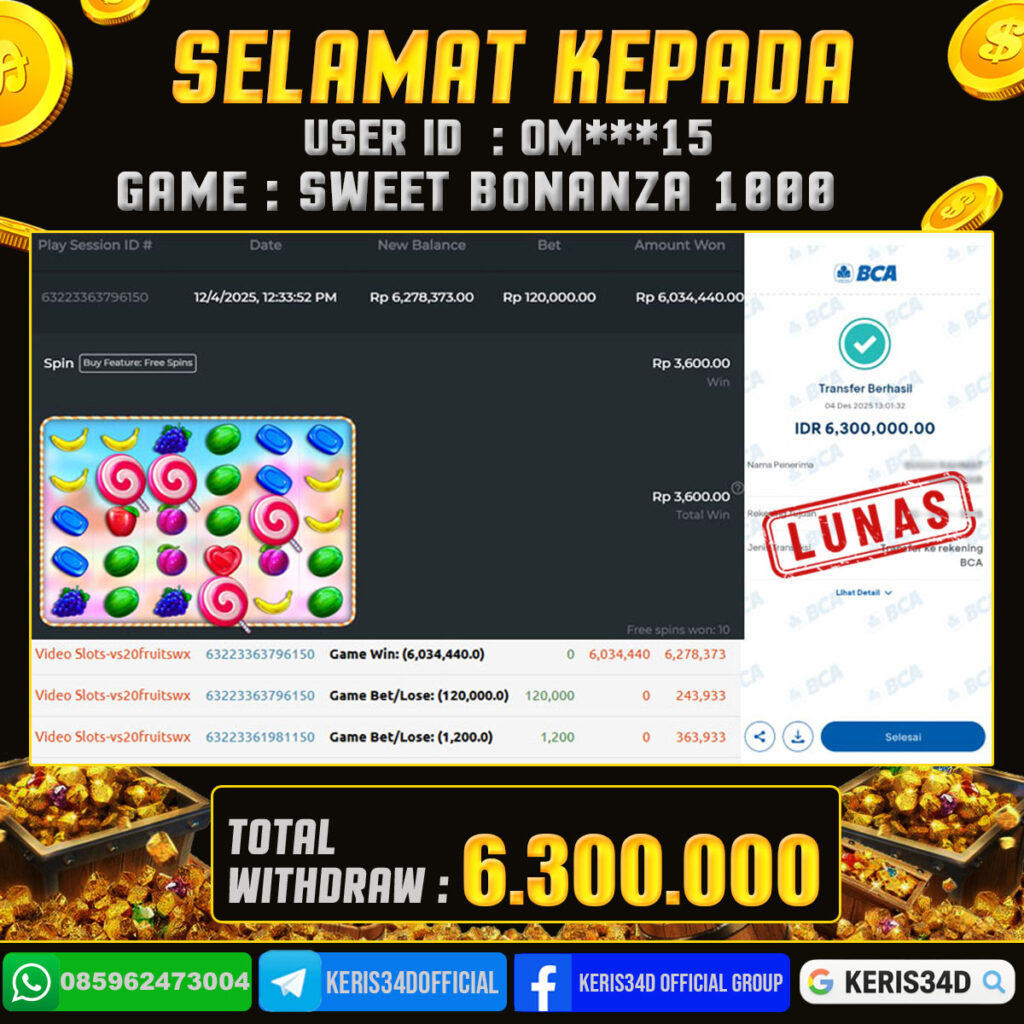 JACKPOT SLOT GACOR MAIN SWEET BONANZA 1000 04 DESEMBER 2025, Jackpot Slot Gacor, Kemenangan Slot, Bukti Kemenangan Slot, Kemenangan PRAGMATIC PLAY, Menang Slot online, Slot Gacor, Situs Aman Terpercaya, WD Berapapun Pasti DI Bayar Tuntas, Maxwin Slot Online.