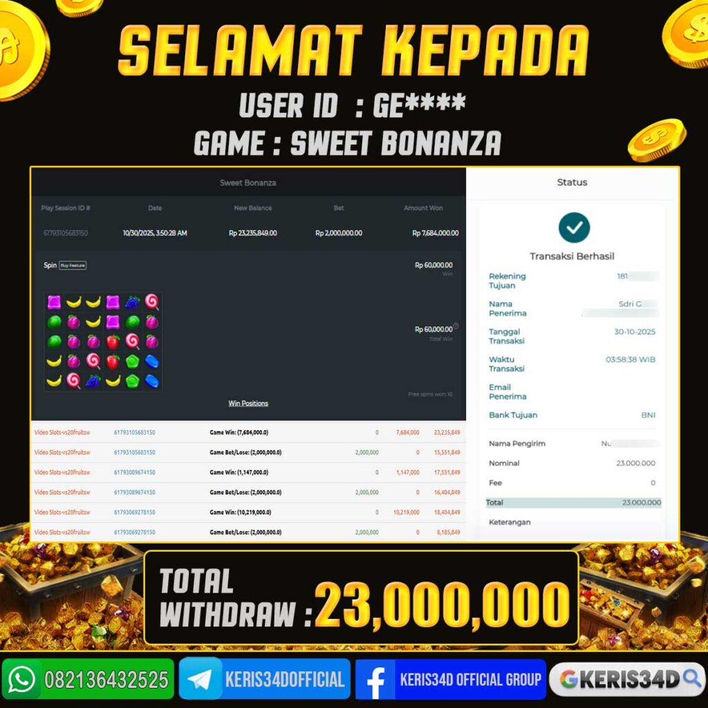 JACKPOT SLOT GACOR MAIN SWEET BONANZA 30 OKTOBER 2025
