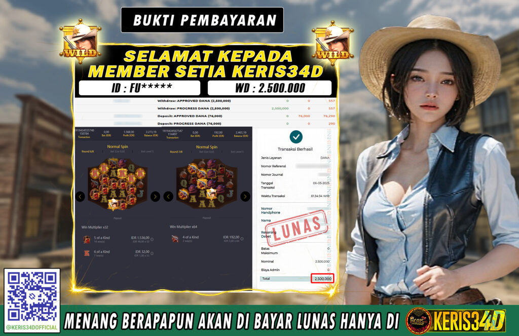 KERIS34D dikenal sebagai situs terpercaya yang selalu menghadirkan pengalaman bermain slot online yang aman, fair, dan berlisensi resmi. Di sini, kami tidak hanya sekadar memberikan janji, tapi bukti nyata berupa slip kemenangan yang dapat Anda lihat secara langsung.