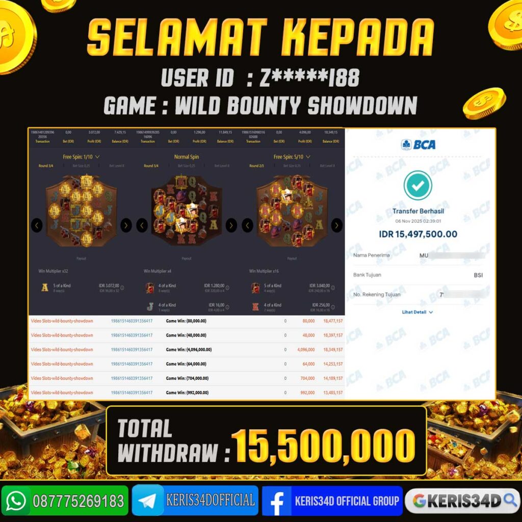 Setiap hari, member KERIS34D berhasil meraih jackpot besar dari berbagai provider slot ternama yang kami sediakan, seperti Pragmatic Play, Habanero, PG Soft, dan masih banyak lagi. Kami secara rutin menampilkan bukti screenshot atau rekapan kemenangan yang berhasil diraih, mulai dari kemenangan ratusan ribu hingga puluhan juta rupiah. Semua slip kemenangan ini kami hadirkan untuk membuktikan bahwa di KERIS34D, peluang menang itu nyata