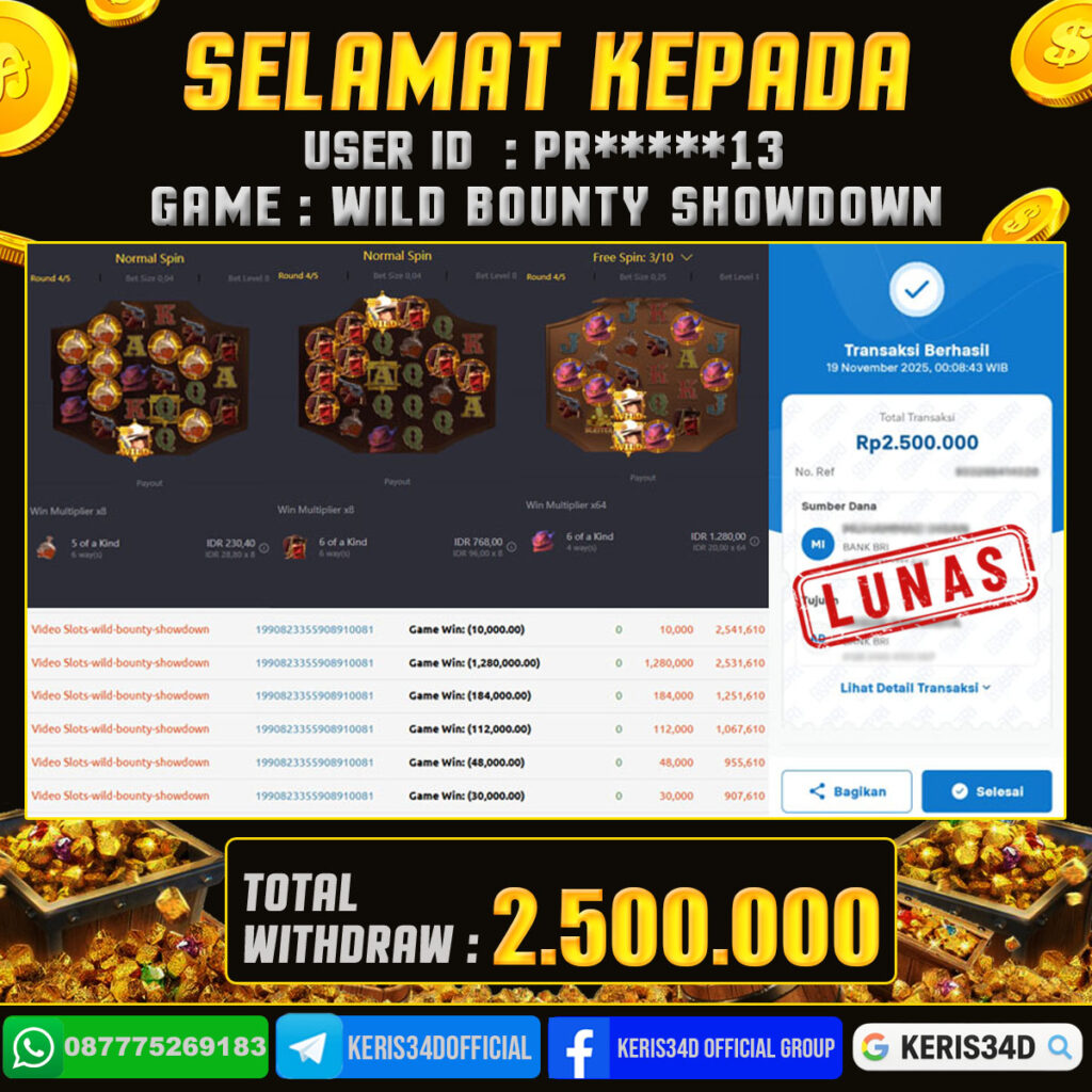 JACKPOT SLOT GACOR MAIN WILD BOUNTY SHOWDOWN 19 NOVEMBER 2025