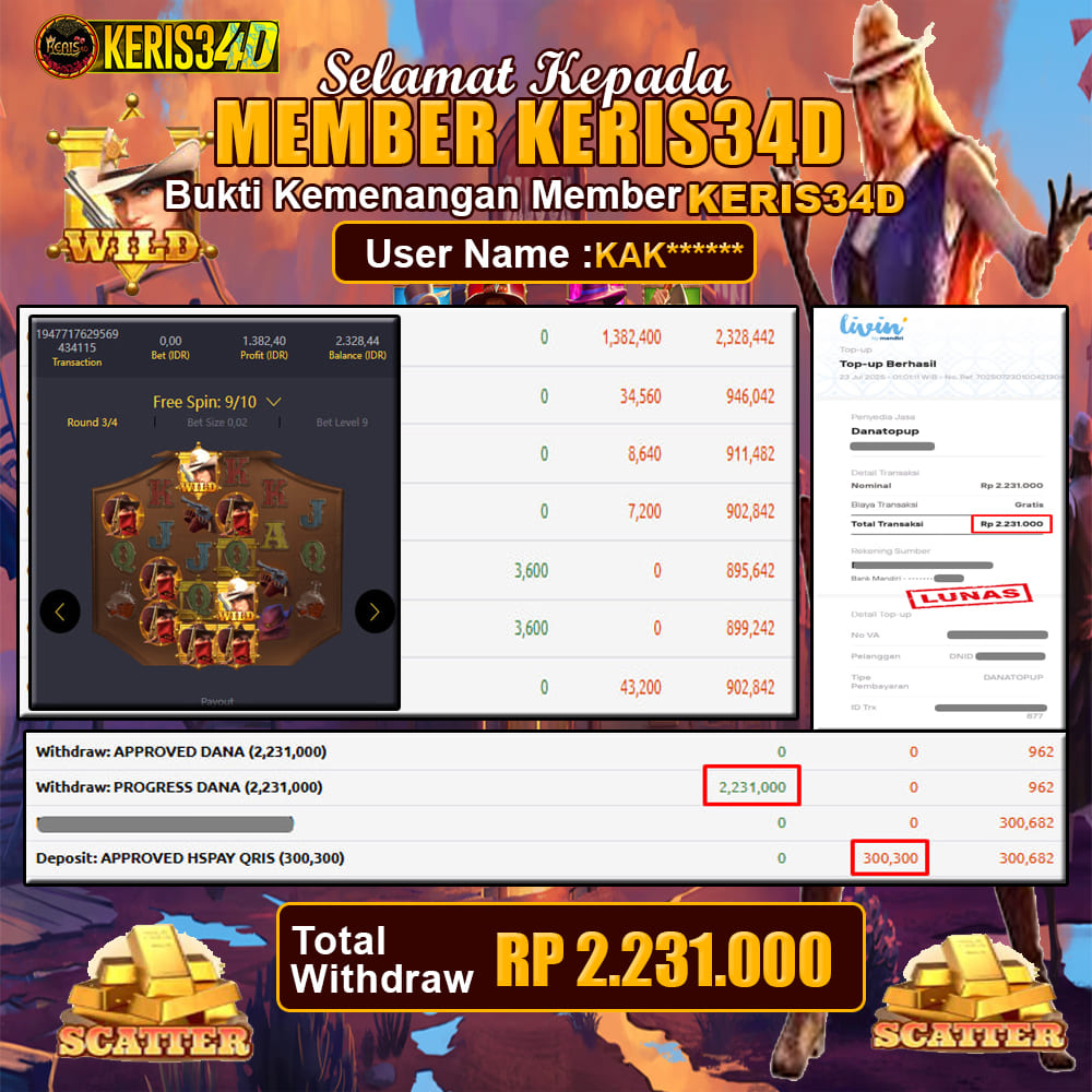 Setiap hari, member KERIS34D berhasil meraih jackpot besar dari berbagai provider slot ternama yang kami sediakan, seperti Pragmatic Play, Habanero, PG Soft, dan masih banyak lagi. Kami secara rutin menampilkan bukti screenshot atau rekapan kemenangan yang berhasil diraih, mulai dari kemenangan ratusan ribu hingga puluhan juta rupiah. Semua slip kemenangan ini kami hadirkan untuk membuktikan bahwa di KERIS34D, peluang menang itu nyata
